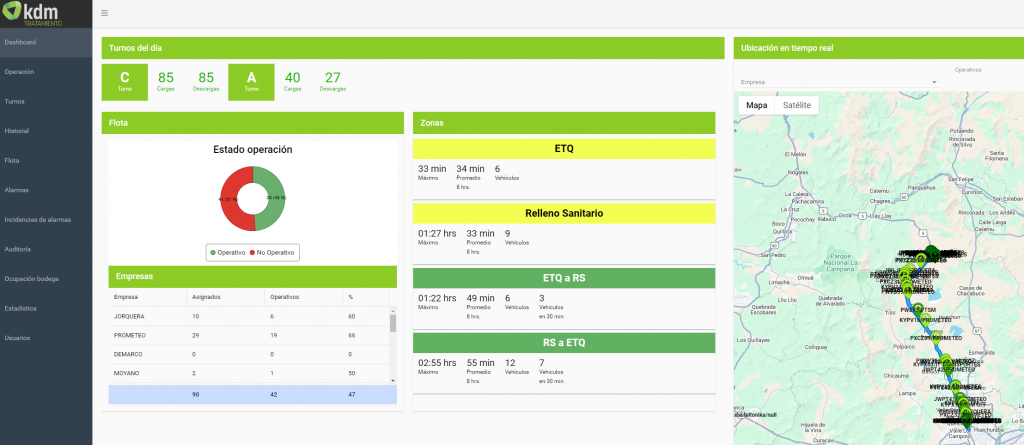 “El principal objetivo era monitorear y controlar los comportamientos de los conductores, saber si conducen a exceso de velocidad tanto en carretera como en las zonas de trabajo o si se desplazan en lugares donde no deben ingresar como por ejemplo en las comunidades aledañas. También conocer los tiempos que les toma realizar el trayecto entre la planta de transferencia y el relleno sanitario esto para saber los niveles de carga de cada zona de trabajo y para que se cumplan las tareas dentro de los turnos establecidos”, comenta Francisco Callejas, ingeniero de Proyecto y Control Operacional de KDM.